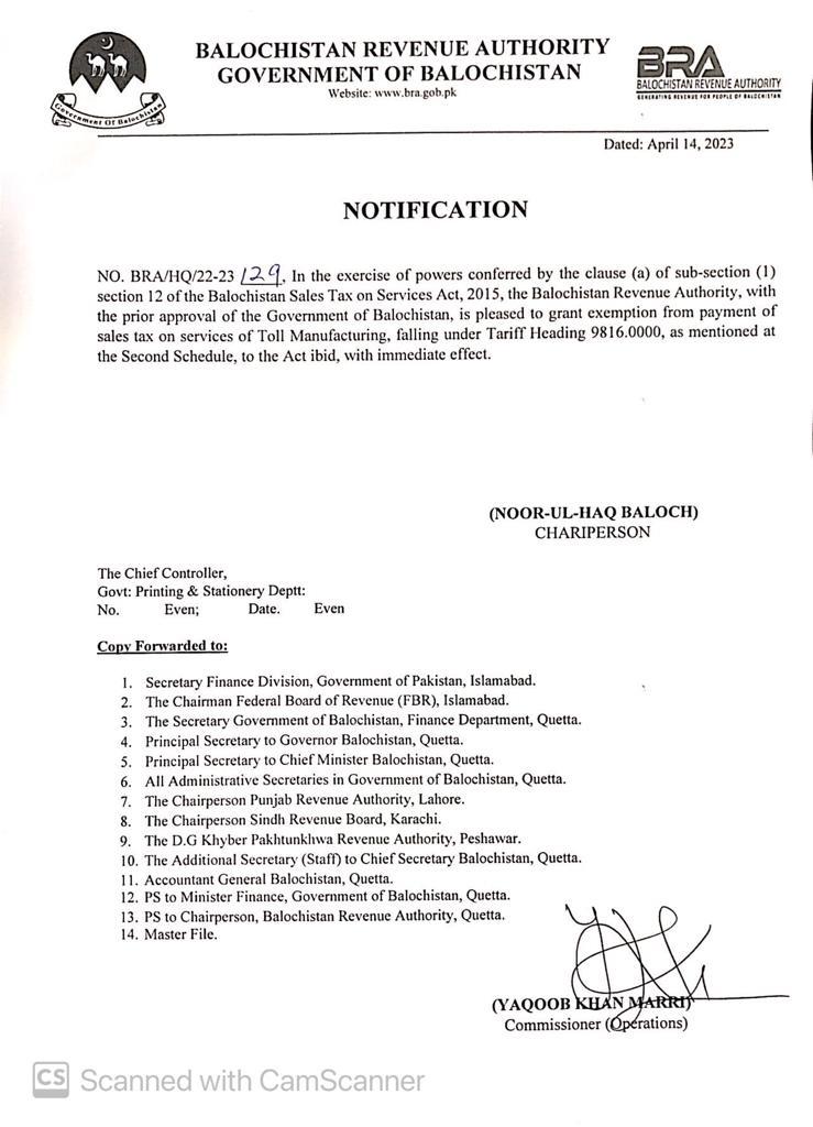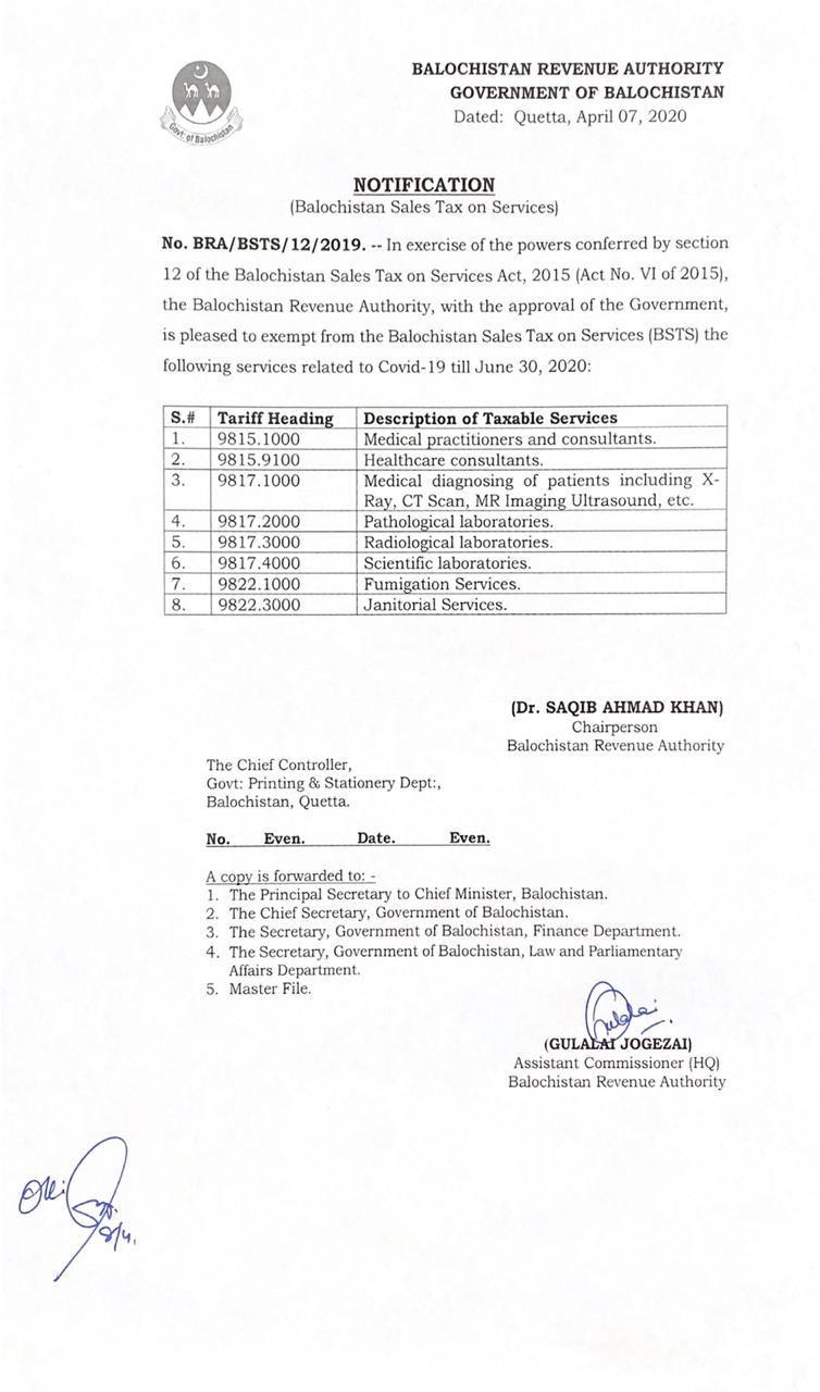 Notification Govt. of Balochistan Head of Accounts Sales Tax on Services — Notifications_SalesTax