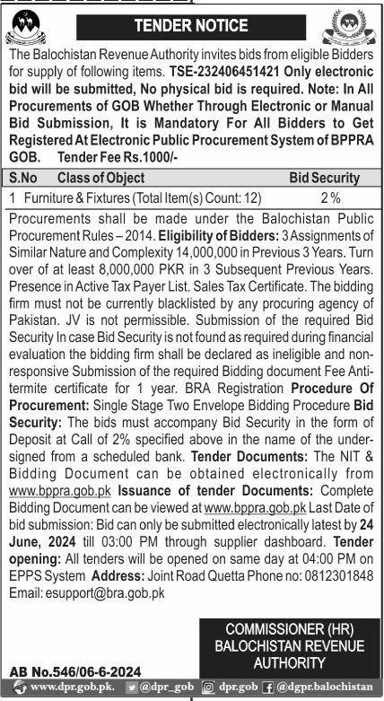 Access forms, acts, rules, notifications, and publications from Balochistan Revenue Authority.