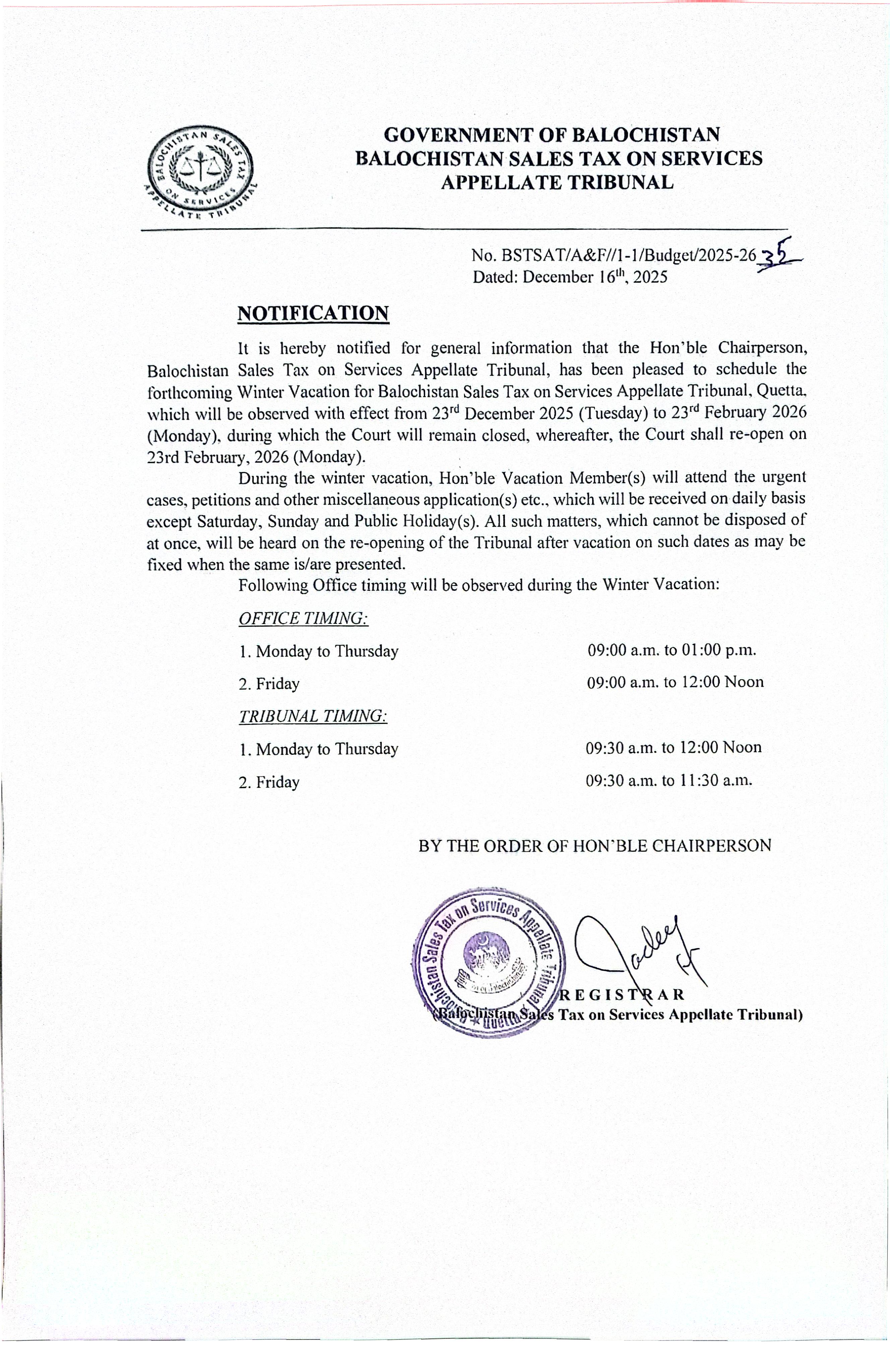 Ensuring fair and impartial justice in tax disputes. Our experienced tribunal provides expert decisions on appeals and maintains the highest standards of legal integrity for the people of Balochistan.
